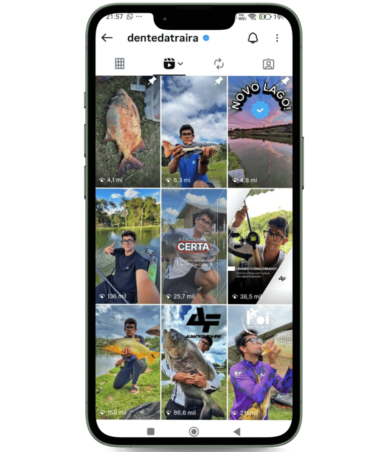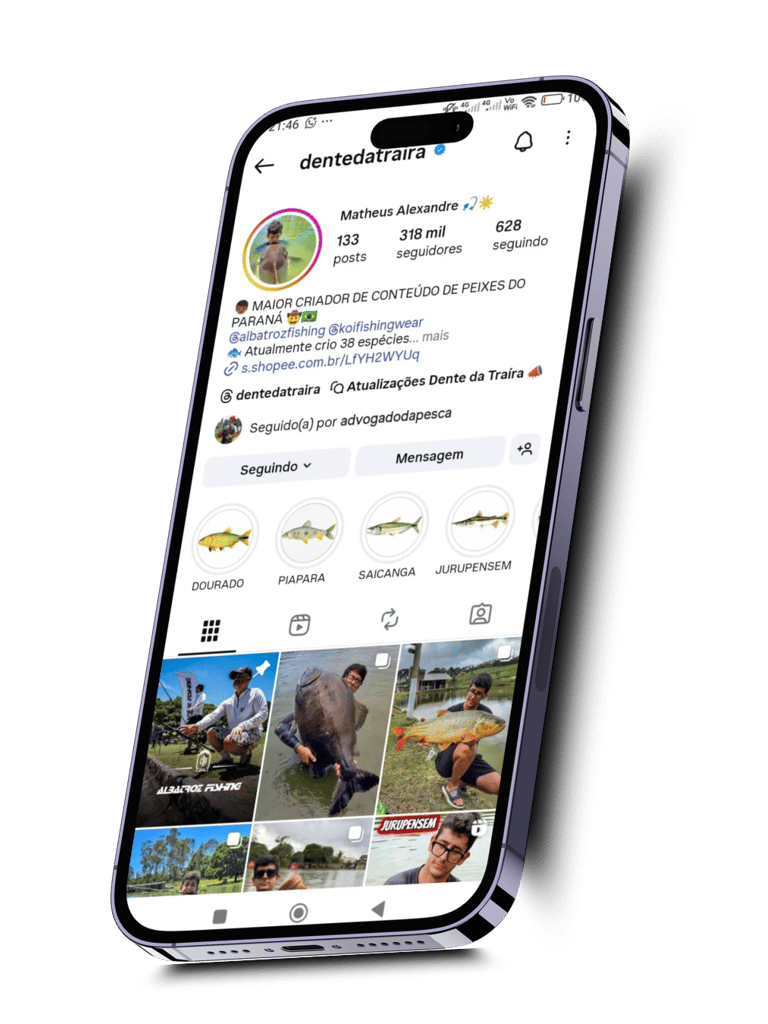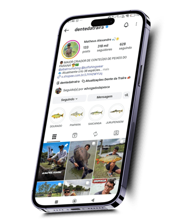 Reconhecido como o maior criador de conteúdo de pesca esportiva do Paraná, o @dentedatraira construiu uma comunidade sólida com mais de 318 mil seguidores ativos, consolidando-se como referência absoluta no segmento.